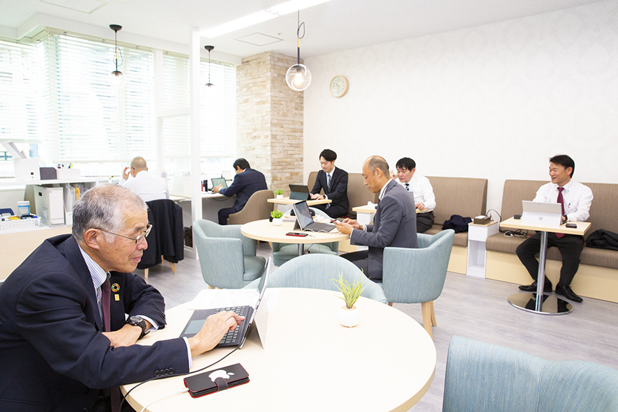まるでカフェにいるような開放的なフロントオフィスは、リラックスするとともに仕事の能率も上がります。