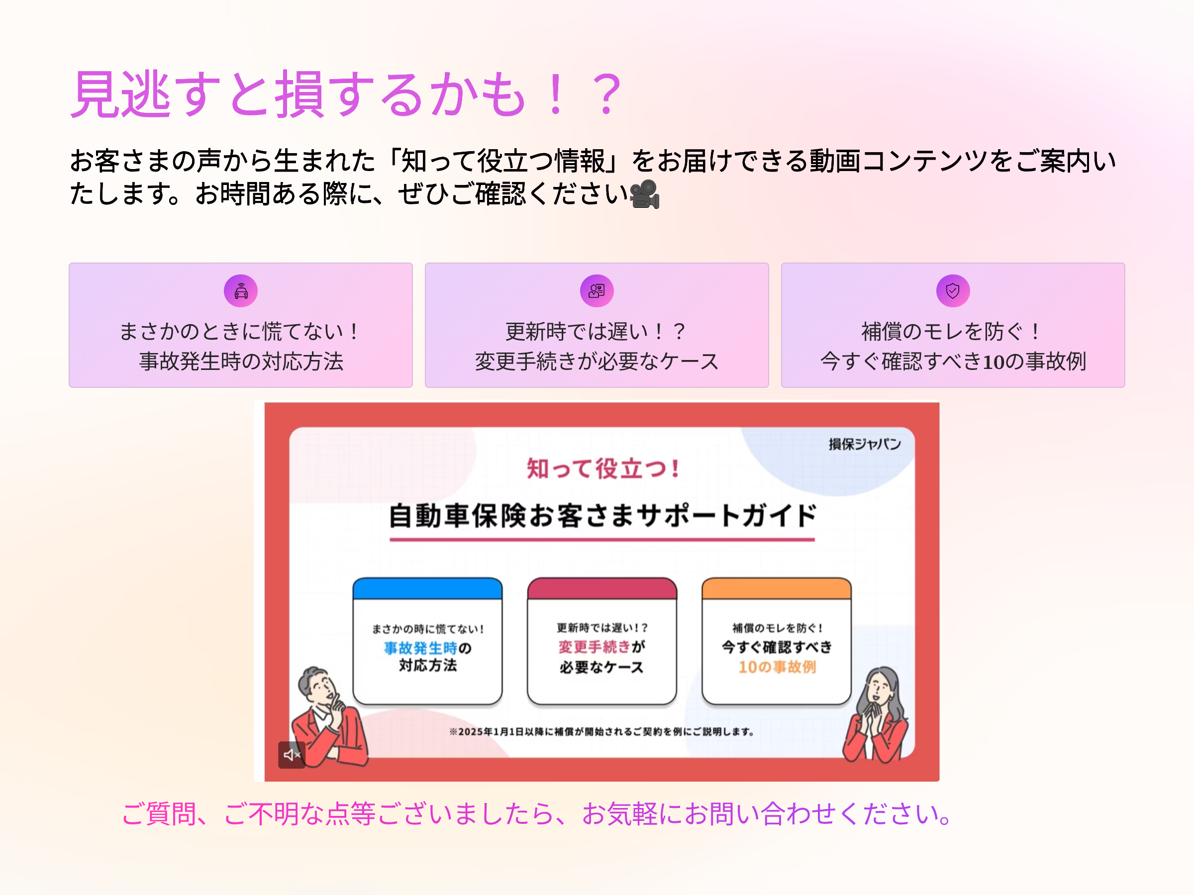 関連リンク:[ https://www.sompo-japan.co.jp/kinsurance/automobile/support/?ref=B6061+000&ref_sub=0000000001&a ]